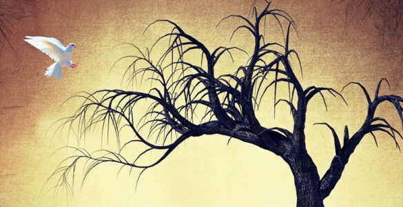 Στὸ μέτωπό μου κουβαλῶ τοῦ οὐρανοῦ τ’ ἀστέρι καὶ ψάχνω ἐπίμονα νὰ βρῶ τὴν εὐτυχία τώρα. Μὰ νά ποὺ πέρα μακριὰ σὲ βλέπω περιστέρι, ἐκεῖ στὴ δύση ποὺ ξυπνᾶς, γοργά, σὰν ἅγια μπόρα. Καὶ σὲ καλῶ νὰ ’ρθῇς κοντὰ σὲ μένα τὸν...