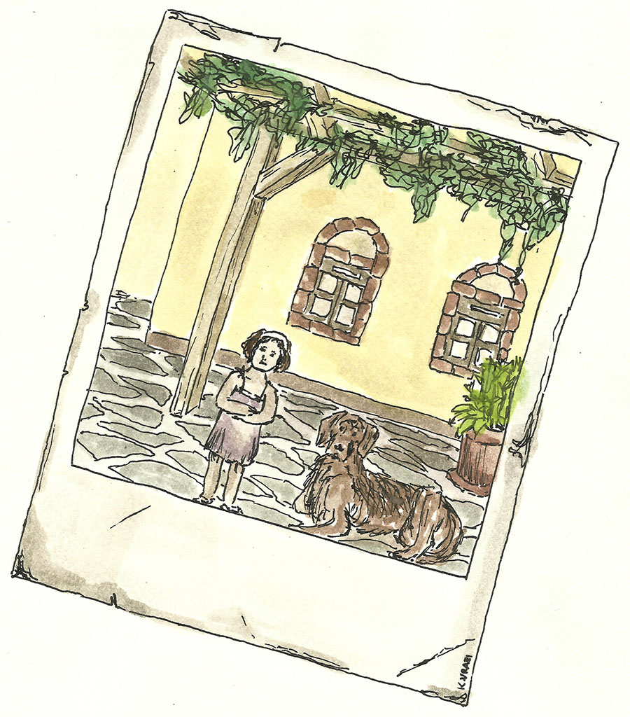 Με το σκαλιστήρι του κήπου κατάφερε ο παππούς το θανάσιμο χτύπημα στο φίδι. Το ίδιο απόγευμα φωτογράφισε εμένα και τον Τζακ κάτω απ’ την κληματαριά με την καινούρια Πολαρόιντ του μπατζανάκη του. Εγώ, μπανιαρισμένη, με ένα εμπριμέ τιραντέ φορεματάκι, με άσπρη κορδέλα στα μαλλιά, ασορτί με τα λευκά μου πέδιλα. Δάγκωνα τα χείλη με μάτια κατακόκκινα από τα δάκρυα που έχυσα για τον άδικο χαμό του φιδιού. Εκείνος πόζαρε δίπλα μου καμαρωτός. Τα κανακέματα του παππού και της γιαγιάς είχαν φουσκώσει το σκυλίσιο του εγώ και το έπαιζε ήρωας της αυλής! Άκου ήρωας! Ήρωας αυτός ο ελεεινός μαρτυριάρης; Ο ηθικός αυτουργός της δολοφονίας του μελλοντικού μου φίλου;